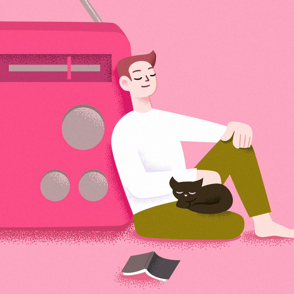 ワンちゃんのための定期便「Doggy Box」のリーフレットイラスト。テーマはキャンプファイヤー。