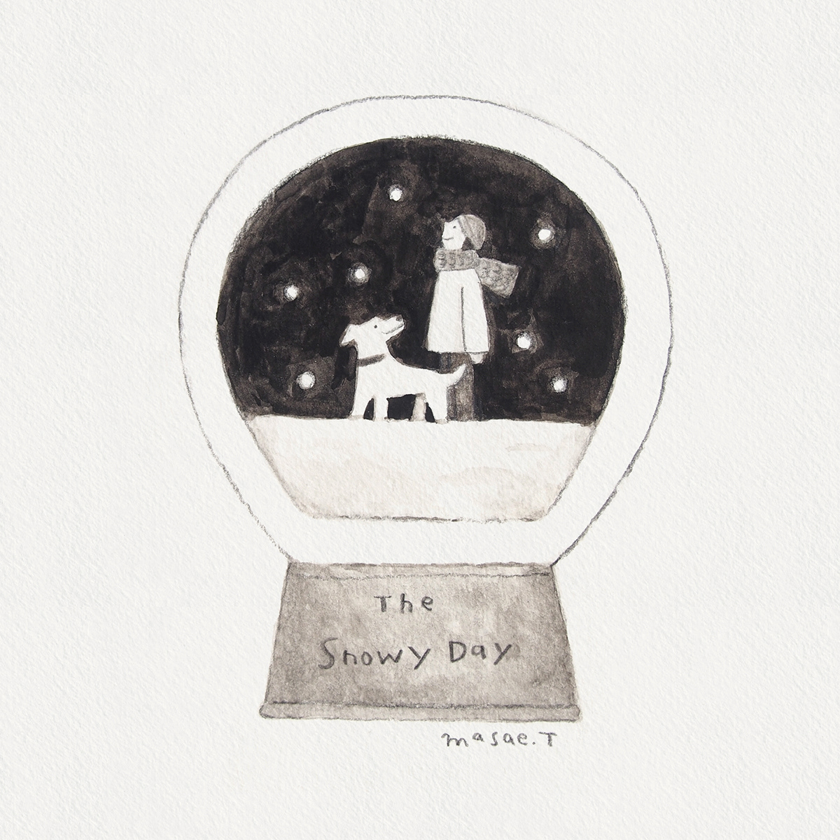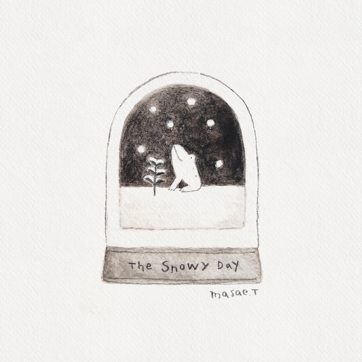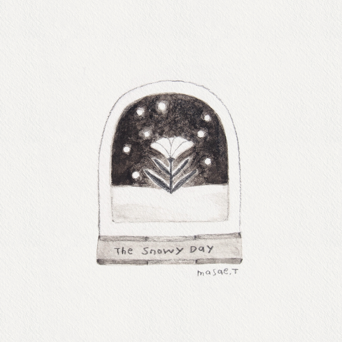 絵の具のにじみと、生成色の紙。モノクロームならではの落ち着いた雰囲気と、あたたかみを感じる作品です。