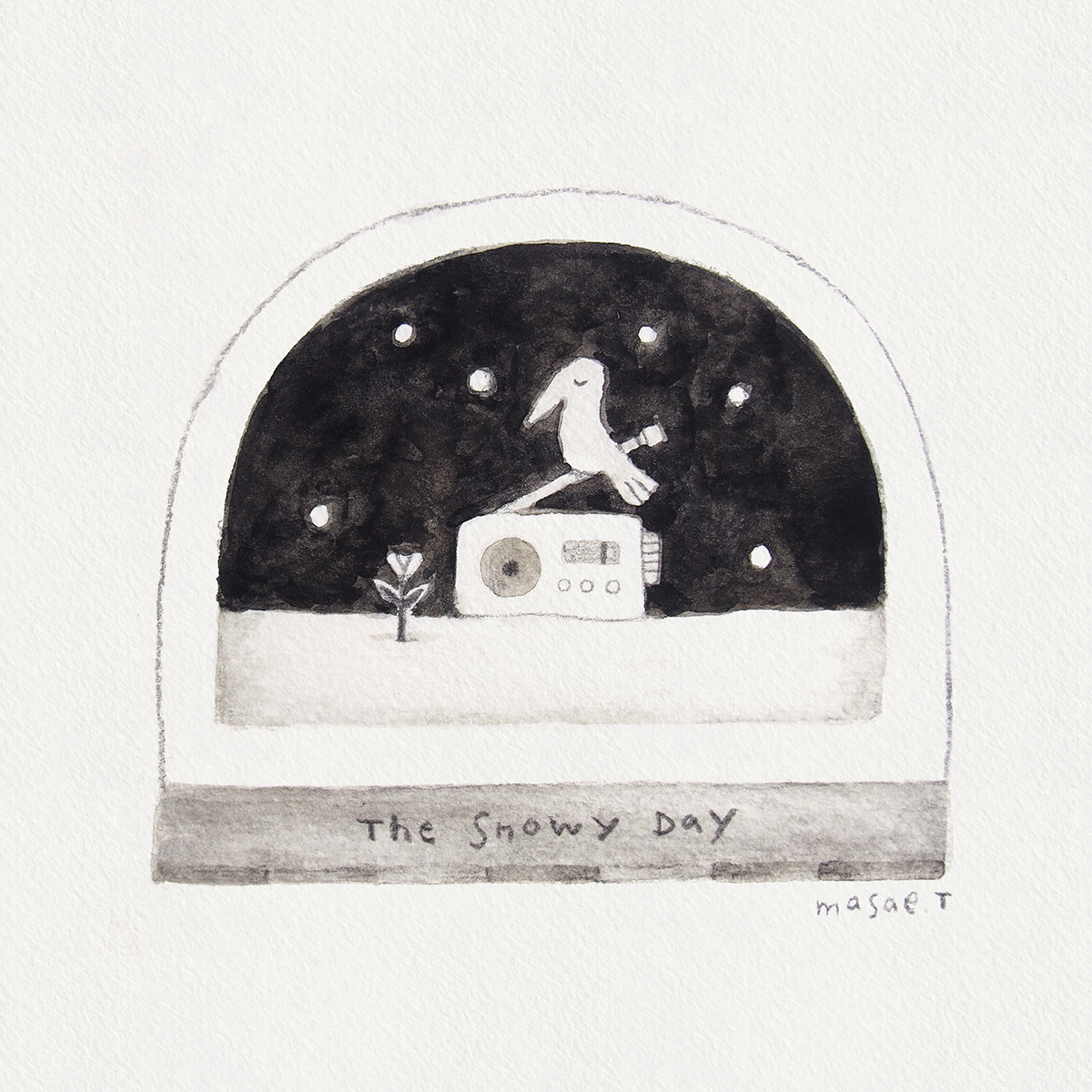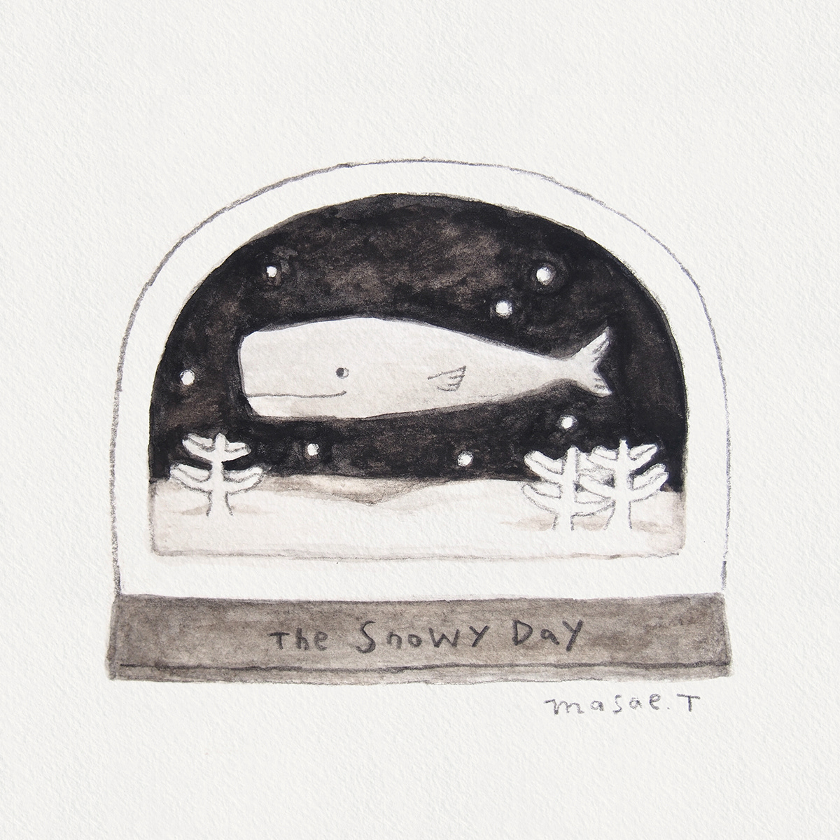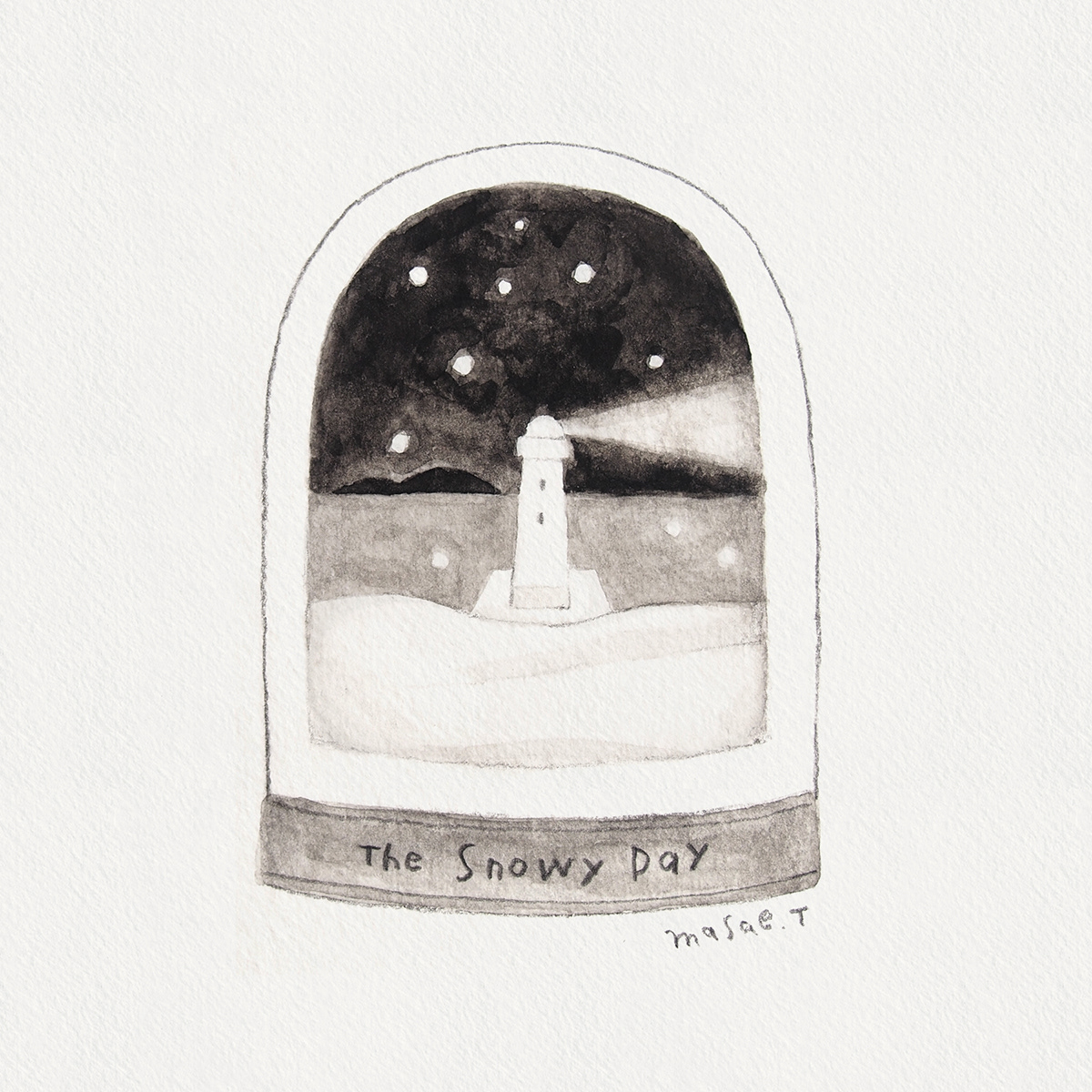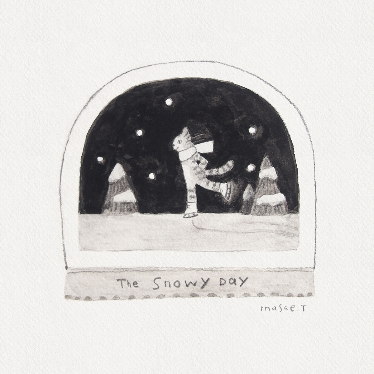 絵の具のにじみと、生成色の紙。モノクロームならではの落ち着いた雰囲気と、あたたかみを感じる作品です。