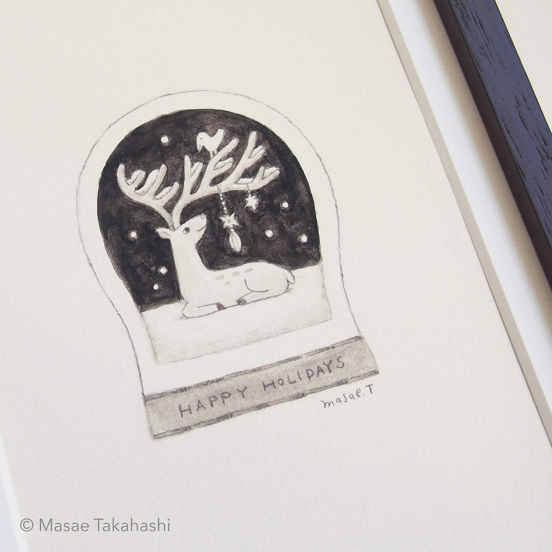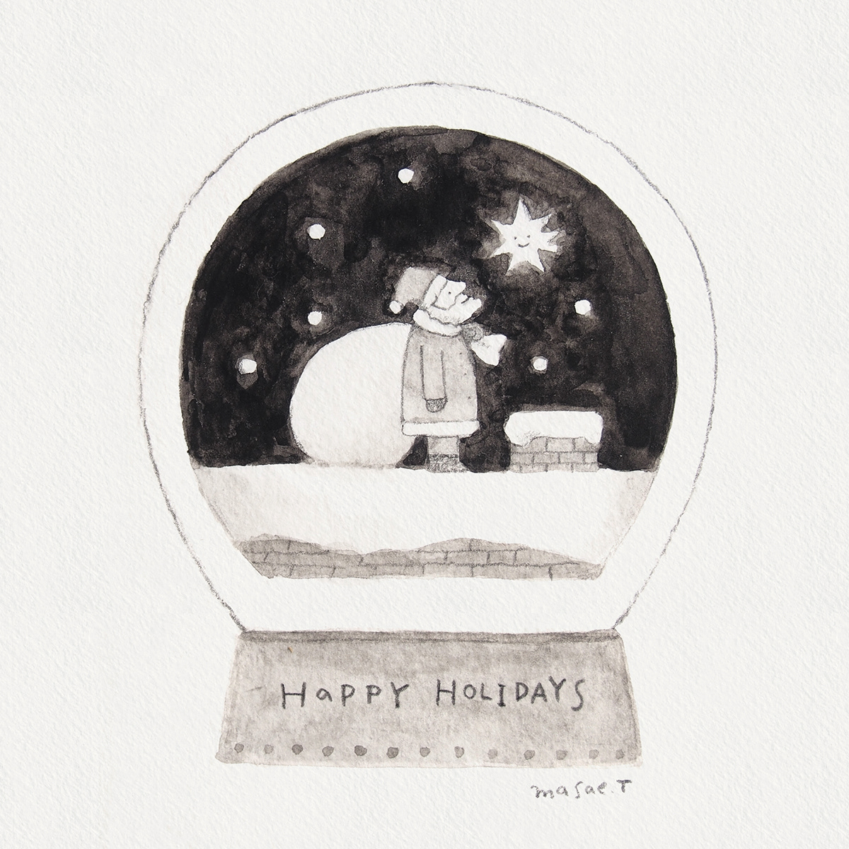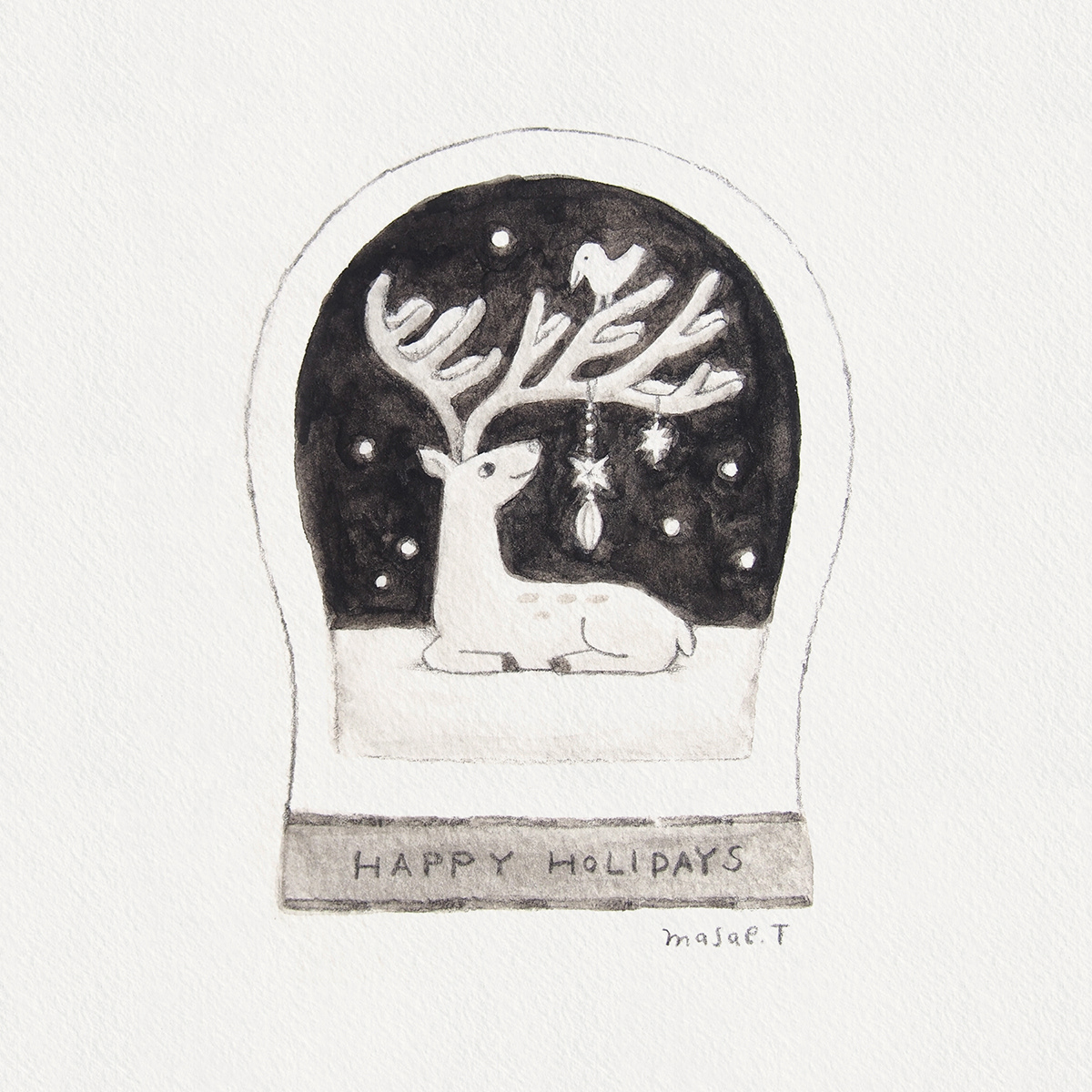 トナカイ、サンタといったホリデーシーズンならではの作品から、愛らしい動物や生活に身近なモチーフが描かれた世界は、日常と空想を繋げる温かい世界を感じます。