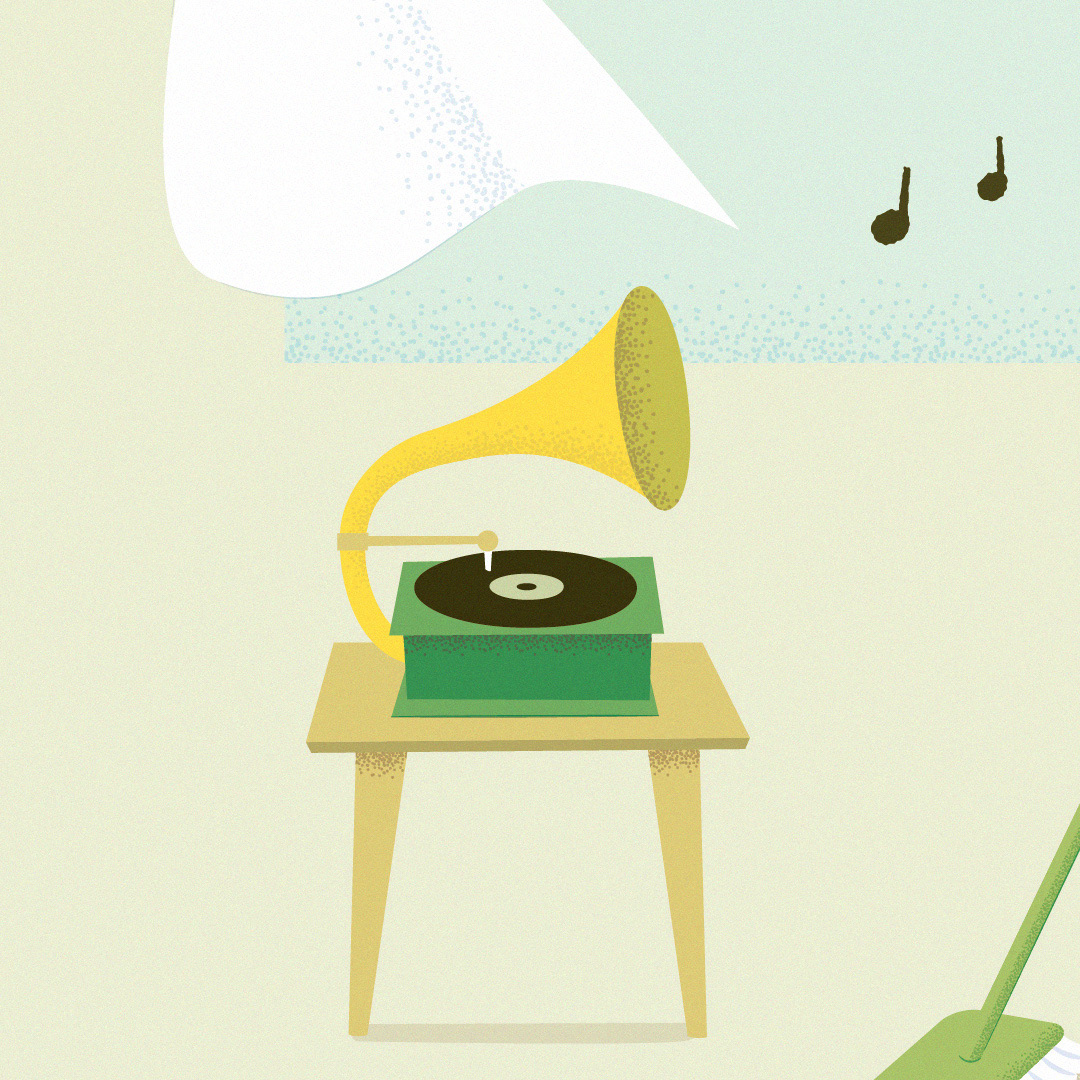 窓を開けて、好きな音楽を流す。心地よい風が吹く。ステイホーム中に描いたオリジナル作品。
